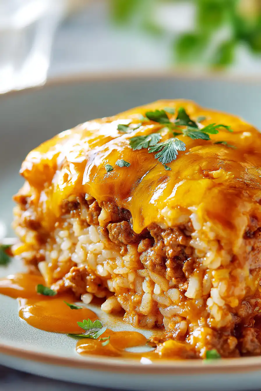 A hybrid Mexican fusion casserole combining ground beef, rice, beans, and cheese in a dump-and-bake format. Perfect for busy families, this gooey, crispy-topped dish delivers burrito-like flavor without the hassle of wrapping.