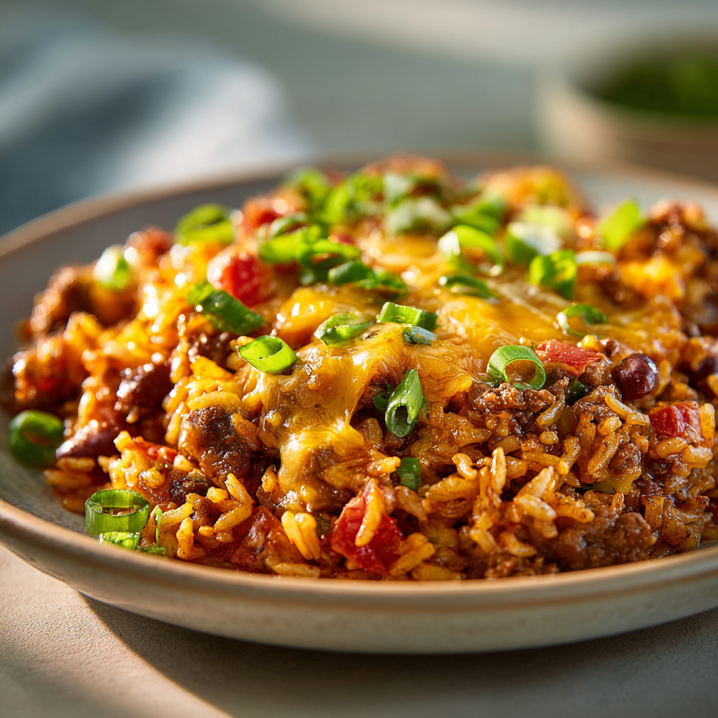 The Cheesy Beef Mexican Rice Casserole (One Pan Dinner) is a hearty, all-in-one meal combining seasoned ground beef, fluffy rice, savory beans, and zesty salsa under a thick layer of melted cheddar cheese. This baked comfort dish provides a complete nutritional profile while minimizing cleanup by utilizing a single skillet or baking pan for the entire process.