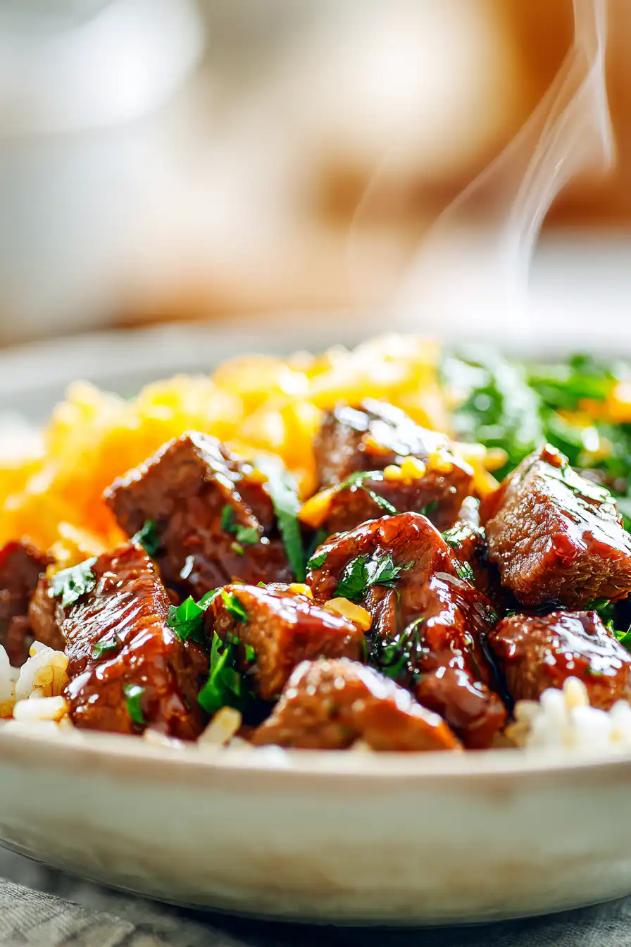 The Garlic Butter Steak Bites Rice Bowl (15 Min Dinner) proves that a sophisticated, flavorful meal does not require extensive time in the kitchen. By focusing on high-quality beef, fresh aromatics, and the simple chemistry of a pan sear, you can create a restaurant-standard dish at home. This recipe offers the perfect balance of savory protein and comforting carbohydrates to satisfy any appetite. Master this quick cooking technique to ensure you always have a reliable, delicious option for your busiest days.